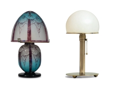(Charles Schneider, 1928/Focke-Museum links; Wilhelm Wagenfeld: Bauhaus-Leuchte, 1928/ Wilhelm Wagenfeld Haus/rechts)
