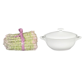 Links: Eine Terrine, die aussieht wie ein Spargel-Bündel
