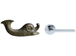 (Focke-Museum, Türdrücker, um 1900/links; Wilhelm Wagenfeld: Türdücker, 1928/rechts; Wilhelm Wagenfeld Haus)